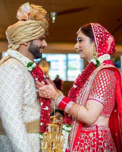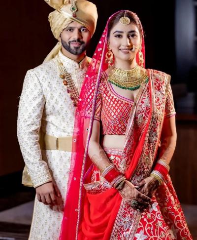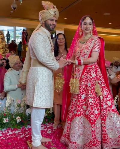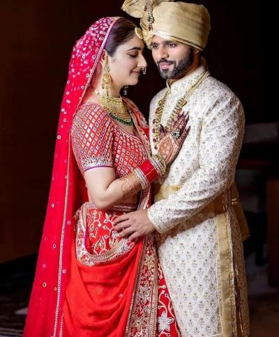 राहुल आणि दिशा दोघांच्याही लग्नातला लूक आकर्षणाचा विषय ठरत आहे.