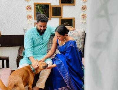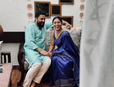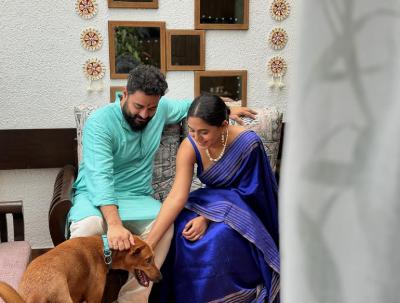 निळ्या रंगाच्या साडीत मृण्मयीचं सौंदर्य खुलून आलं आहे. कुर्ता पायजम्यात स्वप्नील उठून दिसतोय. दोघंही अगदी शोभून दिसत आहेत.