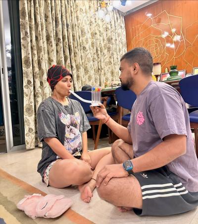 हिना लिहिते, "ज्या दिवशीपासून किमाथेरपी सुरु झाली तेव्हापासून रॉकी माझ्यासोबत गाईडसारखा उभा आहे. शरीर स्वच्छ करण्यापासून ते कपडे घालण्यापर्यंत सगळं तो करतो. तो माझ्याभोवती घेर करु उभा राहिला आहे."