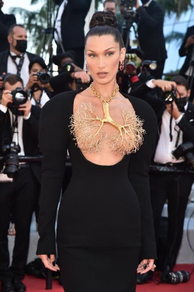 २४ वर्षीय बेला बदीद म्हणाली की, 'देवाचे धन्यवाद, मला वाटतं तिथे छोटासा स्लिप झाला होता'. दरम्यान २०२१ मध्ये बेला हदीद पुन्हा एकदा कान्स फिल्स फेस्टिव्हलमध्ये रेड कार्पेटवर उतरली होती. यावेळी तिने लांब स्लीव्स असलेला गाउन घातला होता. या गाउनमध्ये तिची चेस्ट एक्सपोज होती आणि ब्रासच्या ह्यूमन लंग्स डिझाइन असलेल्या नेकलेसने चेस्ट झाकली होती. या डिझाइनची फार चर्चा झाली होती.