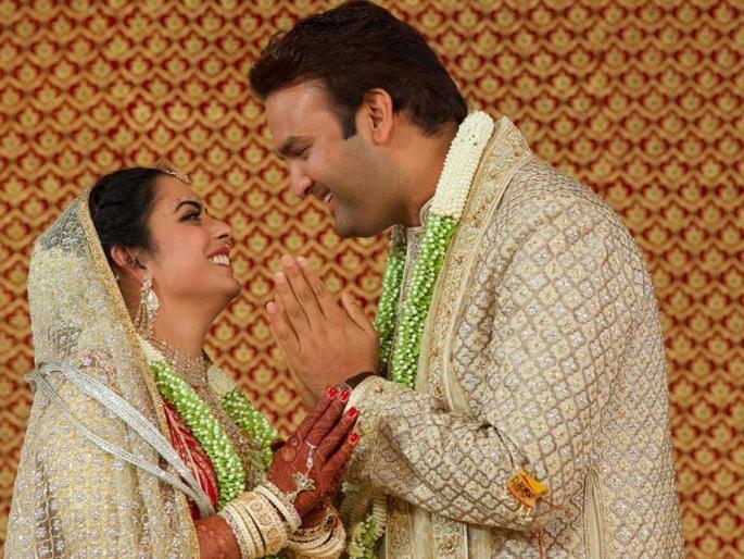 देशातील सर्वाधिक श्रीमंत उद्योगपती मुकेश अंबानी यांची कन्या ईशा अंबानीचा आनंद पिरामलसह शाही थाटात विवाहसोहळा पार पडला. 12 डिसेंबरला या भव्यदिव्य विवाहसोहळ्याचा थाट संपूर्ण जगानं अनुभवला. हे ग्रँड लग्न अंबानींच्या मुंबईतील निवासस्थान अॅन्टीलिया येथे करण्यात आले. या सोहळ्याला मोठ-मोठ्या दिग्गजांनी हजेरी लावली. नवविवाहीत वधु-वर ईशा-आनंदचे फोटो सोशल मीडियावर प्रचंड व्हायलर झाले आहेत.