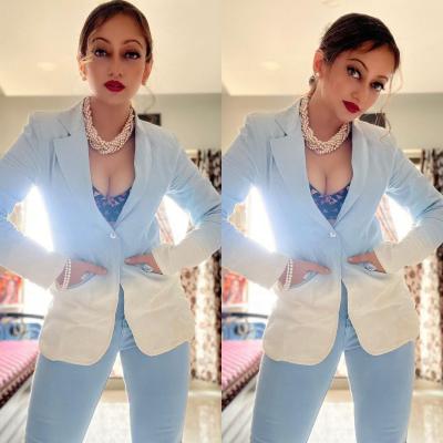 मानसी नाईकने शेअर केलेल्या या फोटोत ती क्लीवेज शो ऑफ करताना दिसते आहे.