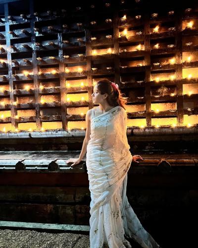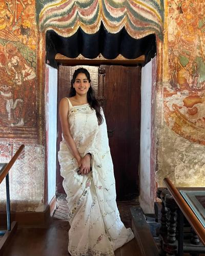 या फोटोंमध्ये जान्हवीने पांढऱ्या रंगाची साडी परिधान केली आहे.