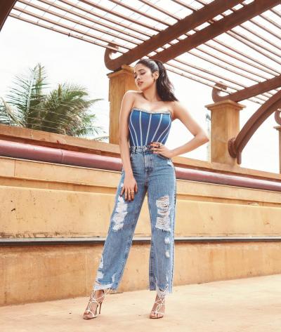 पुन्हा एकदा जान्हवी कपूरचा स्टनिंग अंदाज, डेनिम टॉपमधील फोटोशूटनं वेधलं सर्वांचं लक्ष