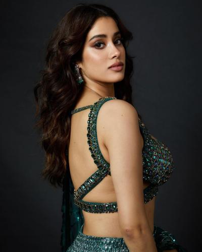 बॉलिवूडची 'धडक गर्ल' जान्हवी कपूरचे काही फोटो सोशल मीडियावर व्हायरल होत आहेत. या फोटोंमध्ये जान्हवीने गडद हिरव्या रंगाचा लेहेंगा परिधान केला आहे आणि यासोबत तिने केस मोकळे ठेवून तिचा लूक पूर्ण केला आहे.