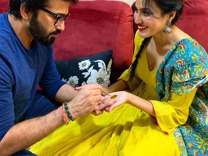 PHOTOS: काम्या पंजाबीने करवाचौथच्या निमित्ताने नवऱ्याकडून काढून घेतली हातावर मेहंदी, पहा फोटो