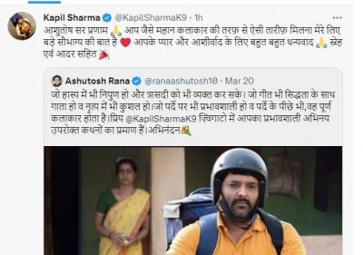 दरम्यान, कपिलनेही आशुतोष राणा यांचे आभार मानले आहेत, तुमच्यासारख्या महान कलाकाराकडून असं कौतुक होणं ही खूप भाग्यशाली गोष्ट आहे, असे कपिलने म्हटले आहे. तसेच, आभारही व्यक्त केले.