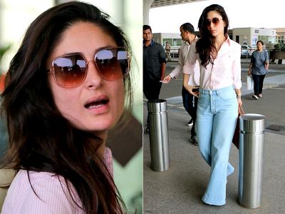 करिनाने ब्ल्यू जीन्स, पिंक शर्ट आणि गॉगल्स घातले होते. ती या लूकमध्ये खूपच छान दिसत होती.