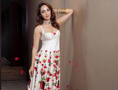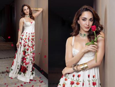 गुलाब प्रिंटेड व्हाईट रंगाच्या ड्रेसवर कियारा अगदी सुंदर दिसतेय.