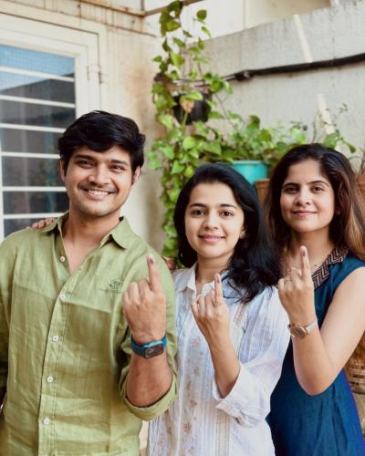 अभिषेक देशमुखने बजावला मतदानाचा हक्क. त्याच्यासोबत त्याची पत्नी आणि अभिनेत्री कृतिका देव, बहीण अमृता देशमुख यांनीही मतदान केले. त्याने तिघांचा फोटो शेअर करत लिहिले की, मतदान हा आपला महत्वाचा हक्क आणि अधिकार आहे..!