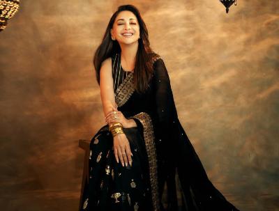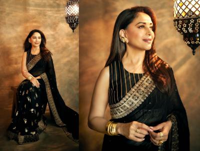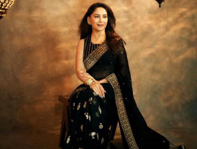 Photos : "धकधक गर्ल" माधुरी दीक्षितचे सुंदर फोटो, काळ्या साडीत बहरलं सौंदर्य