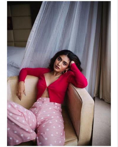 लाल रंगाचा डिप नेक टॉप आणि गुलाबी रंगाची पोलका डॉट पँटमध्ये प्रियाने एकापेक्षा एक बोल्ड पोझ दिल्या आहेत.
