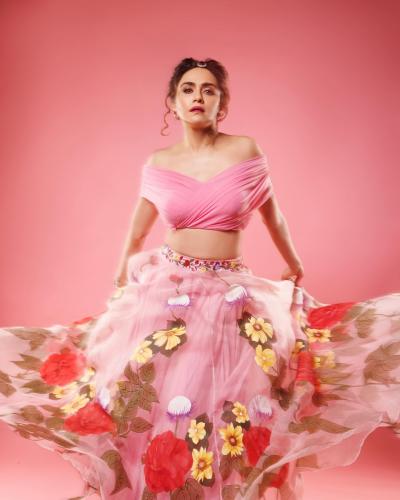 गुलाबी रंगाचा फ्लोरल प्रिंट स्कर्ट आणि टॉपमध्ये अमृताने फोटोशूट केलं आहे. या फोटोंमध्ये अमृता जणू एखाद्या परीसारखीच भासत आहे.