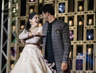 कौमुदी आणि तिचा होणारा पती आकाश चौकसे यांनी संगीत सोहळ्यात रोमँटिक फोटोशूट केलेलं दिसलं.