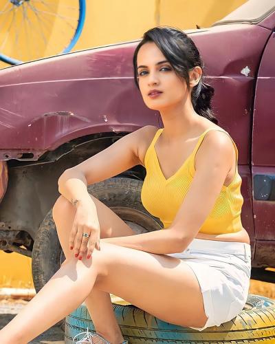 येलो क्रॉप टॉप आणि व्हाईट शॉर्ट्समध्ये केतकीने क्लासी पोझ दिल्या आहेत.अन्य फोटोत ती सिल्व्हर टॉप व पर्पल मिनी स्कर्टमध्ये दिसतेय.