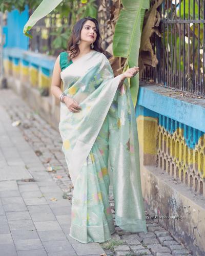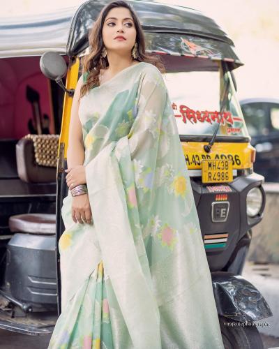 नम्रता फिकट हिरव्या रंगाच्या साडीत खुप सुंदर दिसतेय