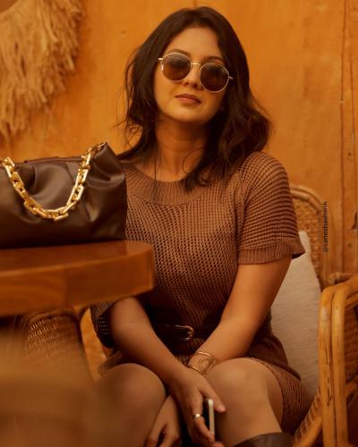 एका स्टायलिश वूडन इंटेरियर असलेल्या ठिकाणी हा फोटोशूट करण्यात आला असून तिच्या पोज लक्ष वेधून घेत आहेत.