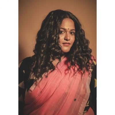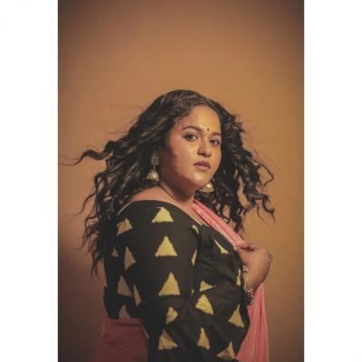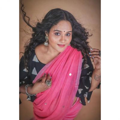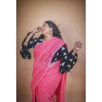 वनिताने शेअर केलेल्या फोटोमध्ये तिने हलक्या गुलाबी रंगाची साडी नेसली आहे.