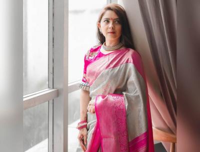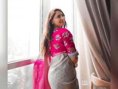 या पारंपरिक लूकमध्ये सोनाली फारच सुंदर दिसत आहे. शिवाय राखाडी रंगाच्या साडीवरील तिचा ब्लाऊज विशेष आकर्षण ठरत आहे.