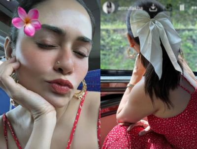 अमृताचा हा क्युट लूक प्रेमात पाडणारा आहे. केसांना व्हाईट रिबीन लावली आहे. तिच्या ड्रेसचा बॅक लूकही एकदम हॉट आहे.