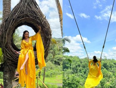 बालीतील प्रसिद्ध स्विंग स्पॉटवर मायलेकींनी मस्त धमाल केलेली दिसत आहे. लोकल आऊटफिटमध्ये अमृता जणू परीच दिसत आहे. पिवळा रंग तिला शोभून दिसत आहे.