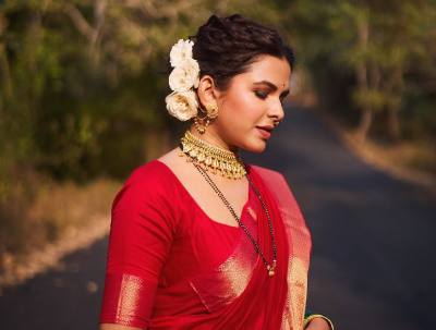 मितालीच्या या लूकला तिची केशरचनाही खूपच शोभून दिसत आहे.