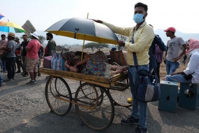फोटोमध्ये दिसणाऱ्या हातगाडीवर सई झोपली आहे. तर त्यांच्या टीममधला एक माणूस तिला ऊन लागू नये म्हणून छत्री पकडून उभा आहे. (फोटो इन्स्टाग्राम)