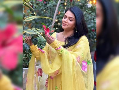 दिपाने पिवळ्या रंगाच्या फ्लोरल प्रिंट असलेला सुरेख ड्रेस परिधान केला आहे.