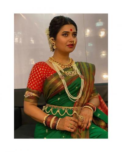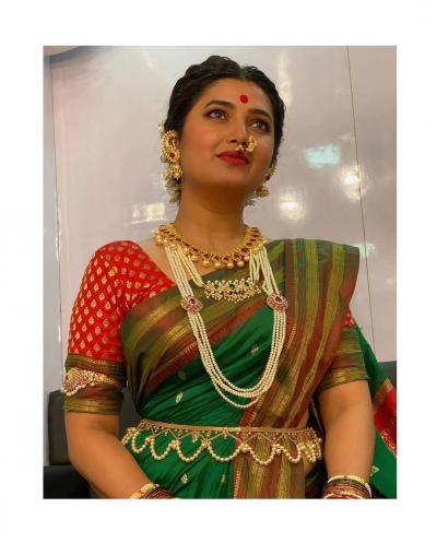 प्राजक्ता माळीने नुकतेच नैना चंद्रापूरकरच्या लूकमधील फोटो शेअर करत लिहिले की, कशी वाटली “नैना चंद्रापूरकर”..? मला तर बुवा शिवलेली नव्हे खरी नऊवार नेसून, सगळे खरे सोन्या- मोत्याचे दागिने घालून, प्रिय अमृताला खडूस नेत्रकटाक्ष देत नाचायला जाम मज्जा आली