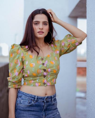 या फोटोत प्रिया बापटने क्रॉप टॉप आणि डेनिम जीन्स घातली आहे.