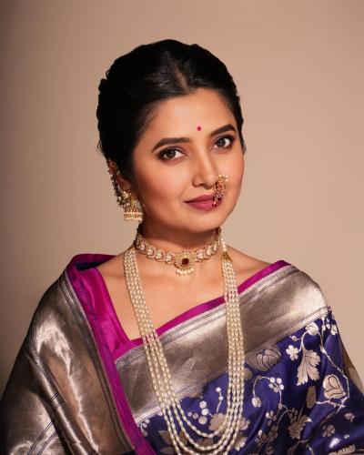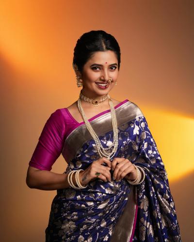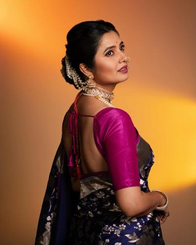 प्राजक्ता माळीने अलिकडेच निळ्या रंगाच्या साडीत फोटोशूट केले आहे.