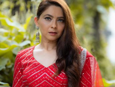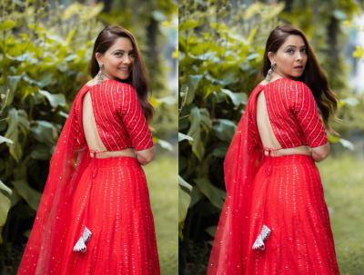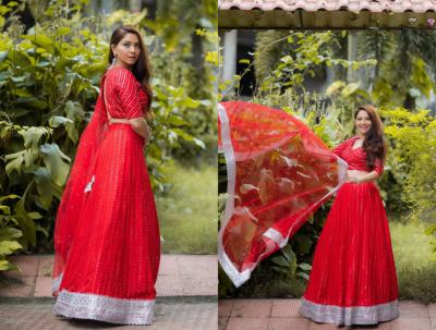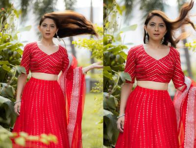 सोनाली कुलकर्णी हटके अंदाजात लाल लेहेंग्यात फोटो क्लिक केले आहेत.