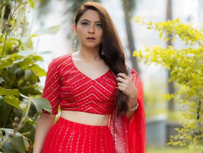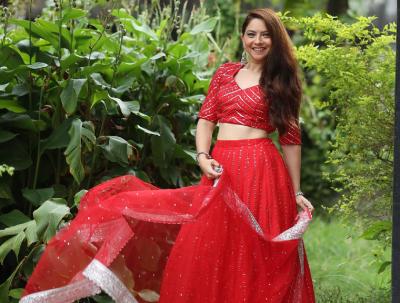 लाल लेहेंग्यात सोनालीने मोकळ्या केसांची हेअरस्टाईल (Open Hair Style) करत हलका मेकअप लूक (Makeup Look) केला आहे.