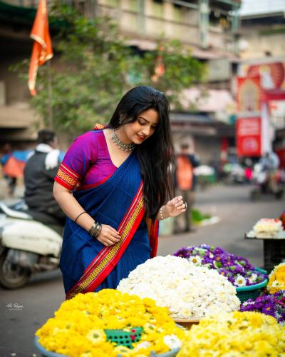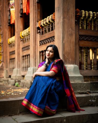 नुकतेच राजेश्वरीने निळ्या रंगाच्या खणाच्या साडीत फोटोशूट केले आहे.
