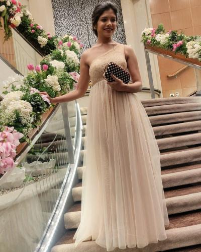 सोनेरी रंगाच्या ड्रेसमध्ये सुरुची खुलून दिसते आहे.