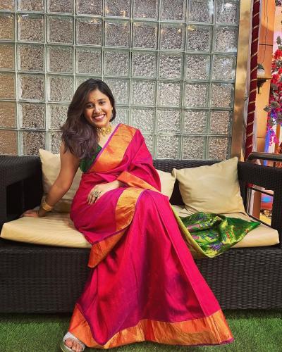 या फोटोत तिने ऑरेंज रंगाची साडी परिधान केली आहे. यात ती खूपच सुंदर दिसते आहे.