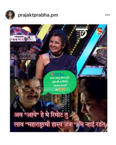 सोशल मीडियावरचे भन्नाट मीम्स म्हणजे आणखी एक मनोरंजन. होय, हे मीम्स पाहताना अनेकांना हसू आवरत नाही. स्वत:वरचे मीम्स एन्जॉय करणारेही इथे अनेकजण आहेत. अभिनेत्री प्राजक्ता माळी यापैकीच एक.