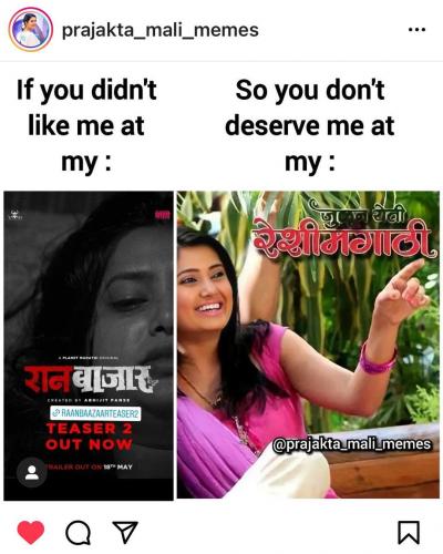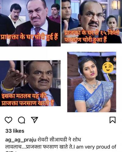 होय, खुद्द प्राजक्ताने तिच्या इन्स्टा अकाऊंटवर स्वत:वरचे काही भन्नाट व मजेशीर मीम्स शेअर केले आहेत. तिचे हे मीम्स सध्या तुफान व्हायरल होत आहेत.