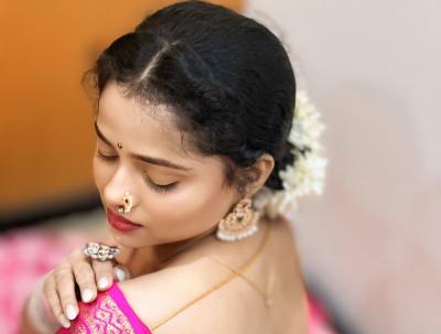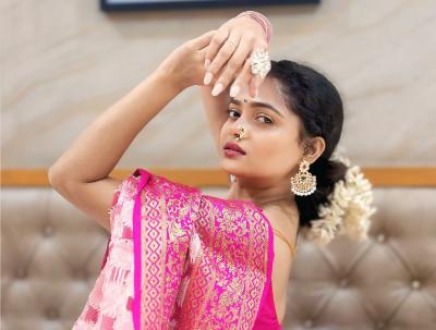 तिने या फोटोशूटमध्ये गुलाबी रंगाची साडी परिधान केली आहे. यावेळी शिवालीने कानात मोठे कानातले परिधान केले आहेत.