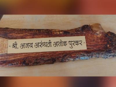 अजय पूरकर यांनी त्यांच्या नेमप्लेटसाठीही लाकडाचाच वापर केल्याचं दिसून येतं.