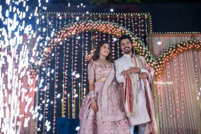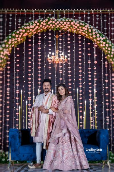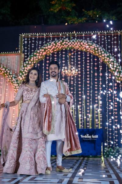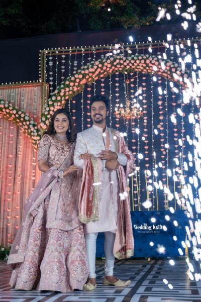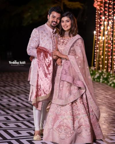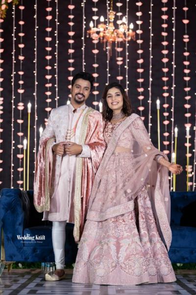 शिवानीने रिसेप्शनमध्ये गुलाबी कलरचा हेवी वर्क असलेला लेहेंगा घातला होता. तर विराजसने तिच्या याच आऊटफिटशी मॅचिंग शेरवानी घातली होती. शिवानीचा लेहेंगा वजनानं चांगलाच जड होता. पण म्हणून उत्साह कमी नव्हता.