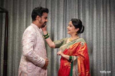 लाडक्या लेकालाही आईनेच तयार केलं. यावेळी विराजस आईच्या प्रेमळ चेहऱ्याकडे एकटक बघत होता. आई आणि लेकाचा हा फोटो सगळ्यांनाच भावला.