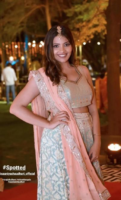 अभिनेत्री सानिया चौधरी ही सुद्धा या रिसेप्शनला हजर होती. तिच्या लुकनं सर्वांचं लक्ष वेधून घेतलं. कॅमेऱ्यांना तिनं अशी मस्त पोझ दिली.