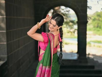 या फोटोंमध्ये हिरव्या रंगाची साडी, केसांची वेणी घालून त्यावर तिने गजरा माळला आहे. तिचे हे फोटो चाहत्यांच्या पसंतीस उतरले आहेत.