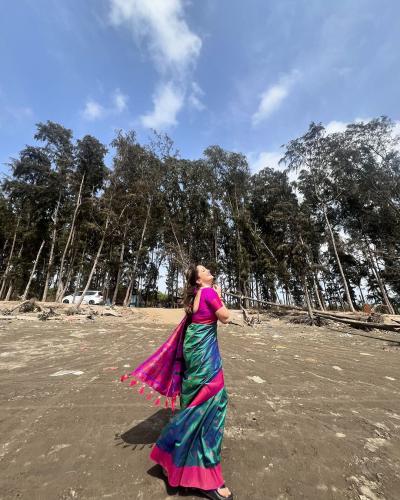 रुपेरी वाळू अन् गर्द झाडी! साडी नेसून मानसी नाईकने समुद्र किनारी केलं फोटोशूट