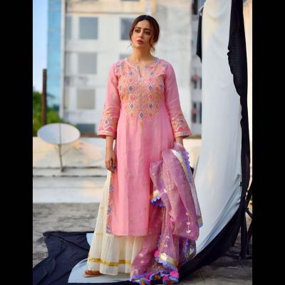 पिंक एथनिक ड्रेसमध्ये नेहा पेंडसेच्या विविध छटा पहायला मिळत आहेत.