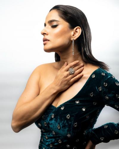 प्रियाने हिरव्या रंगाच्या सिल्कच्या ड्रेसमध्ये फोटोशूट केलं आहे.