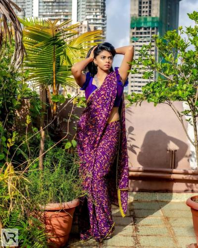 जांभळ्या रंगाच्या साडीत खुललं ऋतुजाचं सौंदर्य