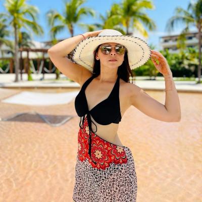 या फोटोंना तिने स्पॅनिश भाषेतलं कॅप्शन दिलं आहे. Hola de mexicoअसं तिने लिहिलं आहे. मॅक्सिकोहून नमस्कार असा याचा अर्थ होतो. फोटोत सोनाली मोनोकिनीत मस्तपैकी पोझ देताना दिसतेय.