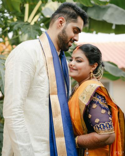 लग्नाच्या फोटोंमध्ये तेजश्री आणि रोहन रोमँटिक अंदाजात दिसत आहे.